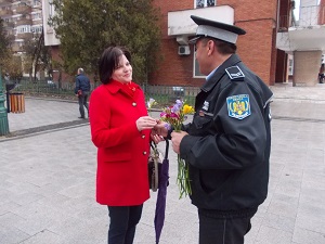 Cu această ocazie aceştia, împreună cu Asociaţia Profesională a Poliţiştilor Locali din Caraş-Severin, au oferit în această zi specială flori şi au adresat mesaje frumoase doamnelor şi domnişoarelor aflate în zona Centrul Civic, Complex Victoria şi Zona Intim din municipiul Reşiţa.